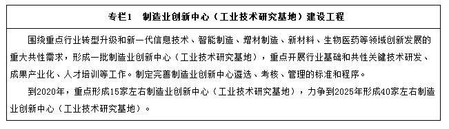 完善國家制造業(yè)創(chuàng )新體系。加強頂層設計,加快建立以創(chuàng )新中心為核心載體、以公共服務(wù)平臺和工程數據中心為重要支撐的制造業(yè)創(chuàng )新網(wǎng)絡(luò ),建立市場(chǎng)化的創(chuàng )新方向選擇機制和鼓勵創(chuàng )新的風(fēng)險分擔、利益共享機制。充分利用現有科技資源,圍繞制造業(yè)重大共性需求,采取政府與社會(huì )合作、政產(chǎn)學(xué)研用產(chǎn)業(yè)創(chuàng )新戰略聯(lián)盟等新機制新模式,形成一批制造業(yè)創(chuàng )新中心(工業(yè)技術(shù)研究基地),開(kāi)展關(guān)鍵共性重大技術(shù)研究和產(chǎn)業(yè)化應用示范。建設一批促進(jìn)制造業(yè)協(xié)同創(chuàng )新的公共服務(wù)平臺,規范服務(wù)標準,開(kāi)展技術(shù)研發(fā)、檢驗檢測、技術(shù)評價(jià)、技術(shù)交易、質(zhì)量認證、人才培訓等專(zhuān)業(yè)化服務(wù),促進(jìn)科技成果轉化和推廣應用。建設重點(diǎn)領(lǐng)域制造業(yè)工程數據中心,為企業(yè)提供創(chuàng )新知識和工程數據的開(kāi)放共享服務(wù)。面向制造業(yè)關(guān)鍵共性技術(shù),建設一批重大科學(xué)研究和實(shí)驗設施,提高核心企業(yè)系統集成能力,促進(jìn)向價(jià)值鏈高端延伸。