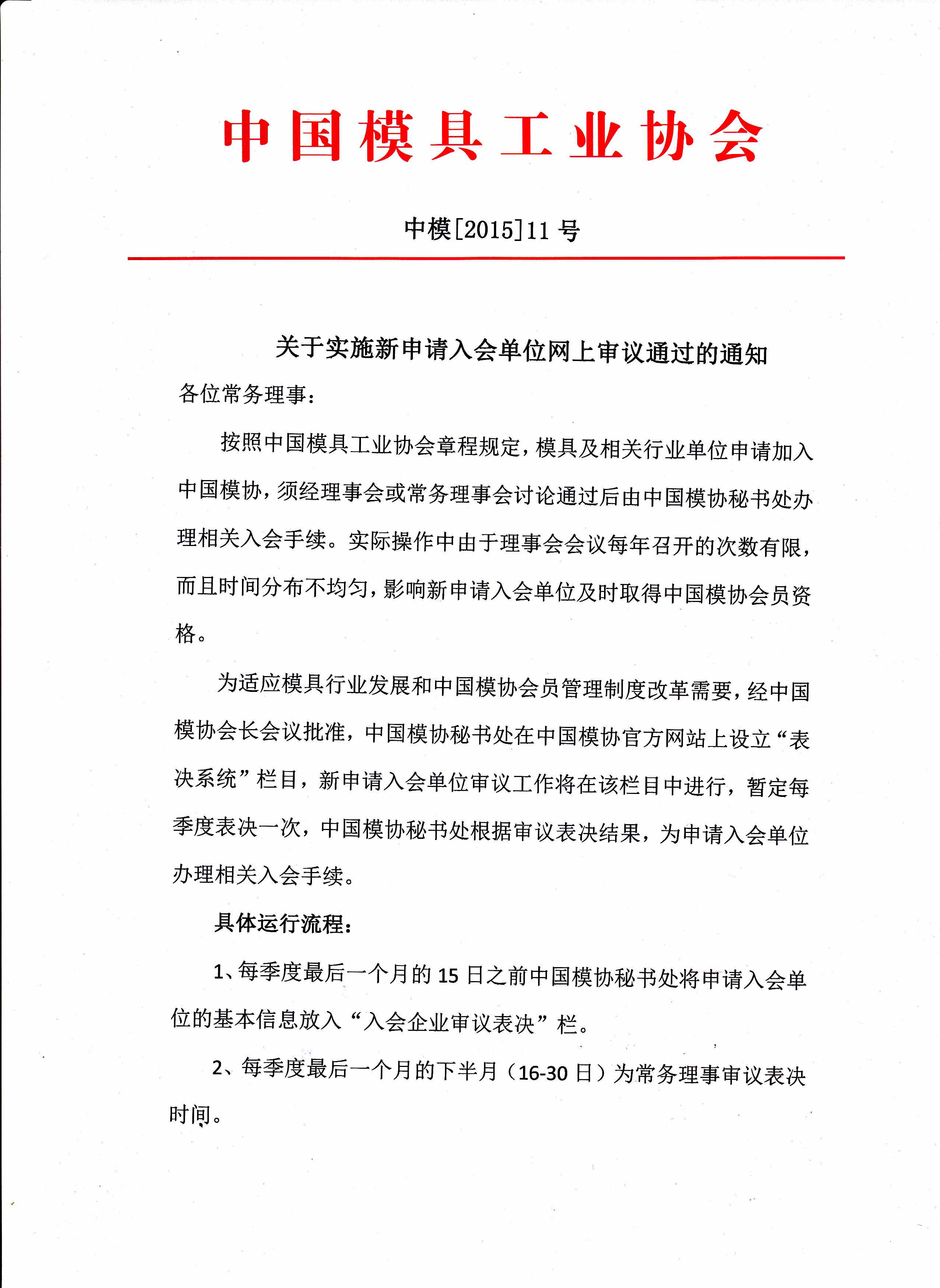 關(guān)于實(shí)施新申請入會(huì )單位網(wǎng)上審議通過(guò)的通知