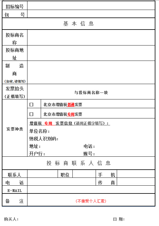 4、表中各項必須認真填寫(xiě),因填寫(xiě)內容不清、不全而造成的后果由購買(mǎi)人自負。