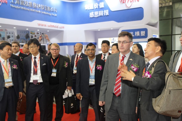 中國模具工業(yè)協(xié)會(huì )常務(wù)副會(huì )長(cháng)兼秘書(shū)長(cháng)武兵書(shū)帶領(lǐng)各協(xié)會(huì )領(lǐng)導參觀(guān)DMC2016