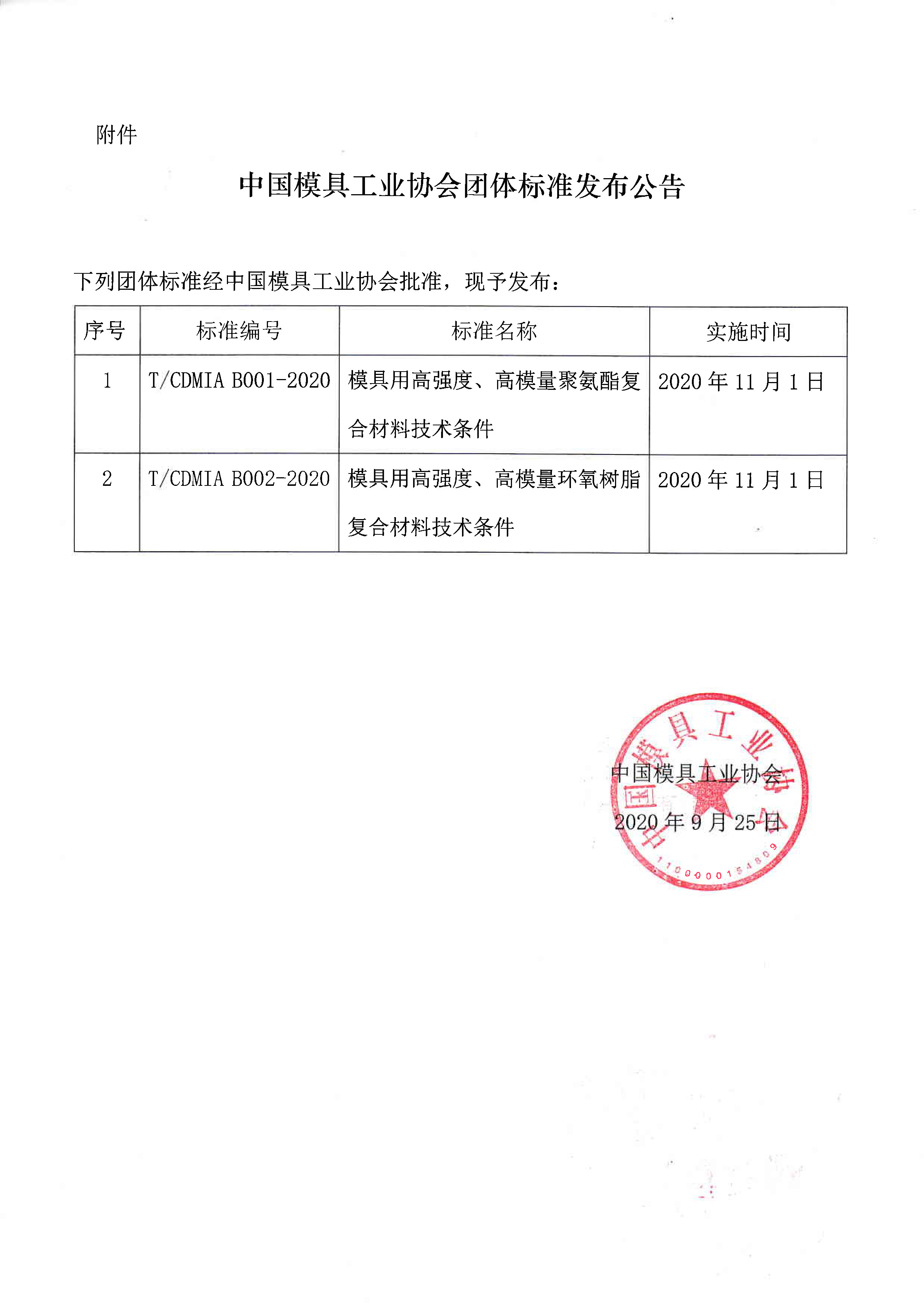 關(guān)于發(fā)布《模具用高強度、高模量聚氨酯復合材料技術(shù)條件》等兩項團體標準公告的通知