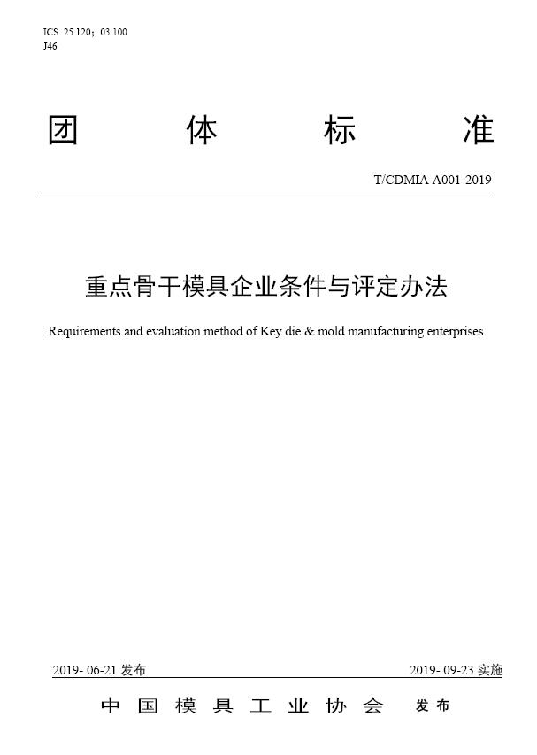 中國模協(xié)標準A001-重點(diǎn)骨干模具企業(yè)條件與評定辦法-2019