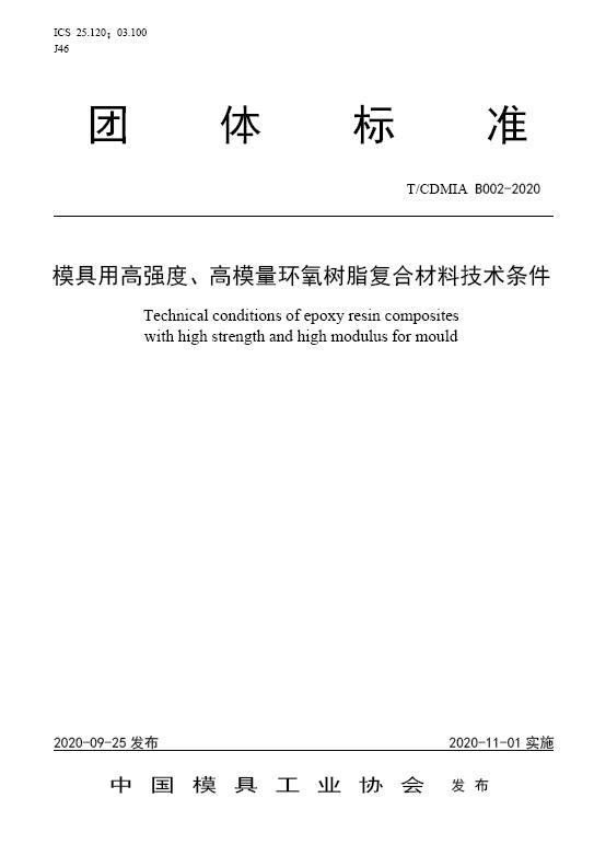 中國模協(xié)標準B002-模具用高強度、高模量環(huán)氧樹(shù)脂復合材料技術(shù)條件-2020
