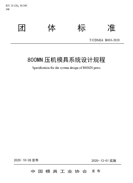 中國模協(xié)標準B003-800MN壓機模具系統設計規程-2020