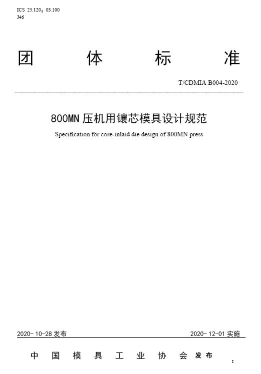 中國模協(xié)標準B004-800MN壓機用鑲芯模具設計規范-2020