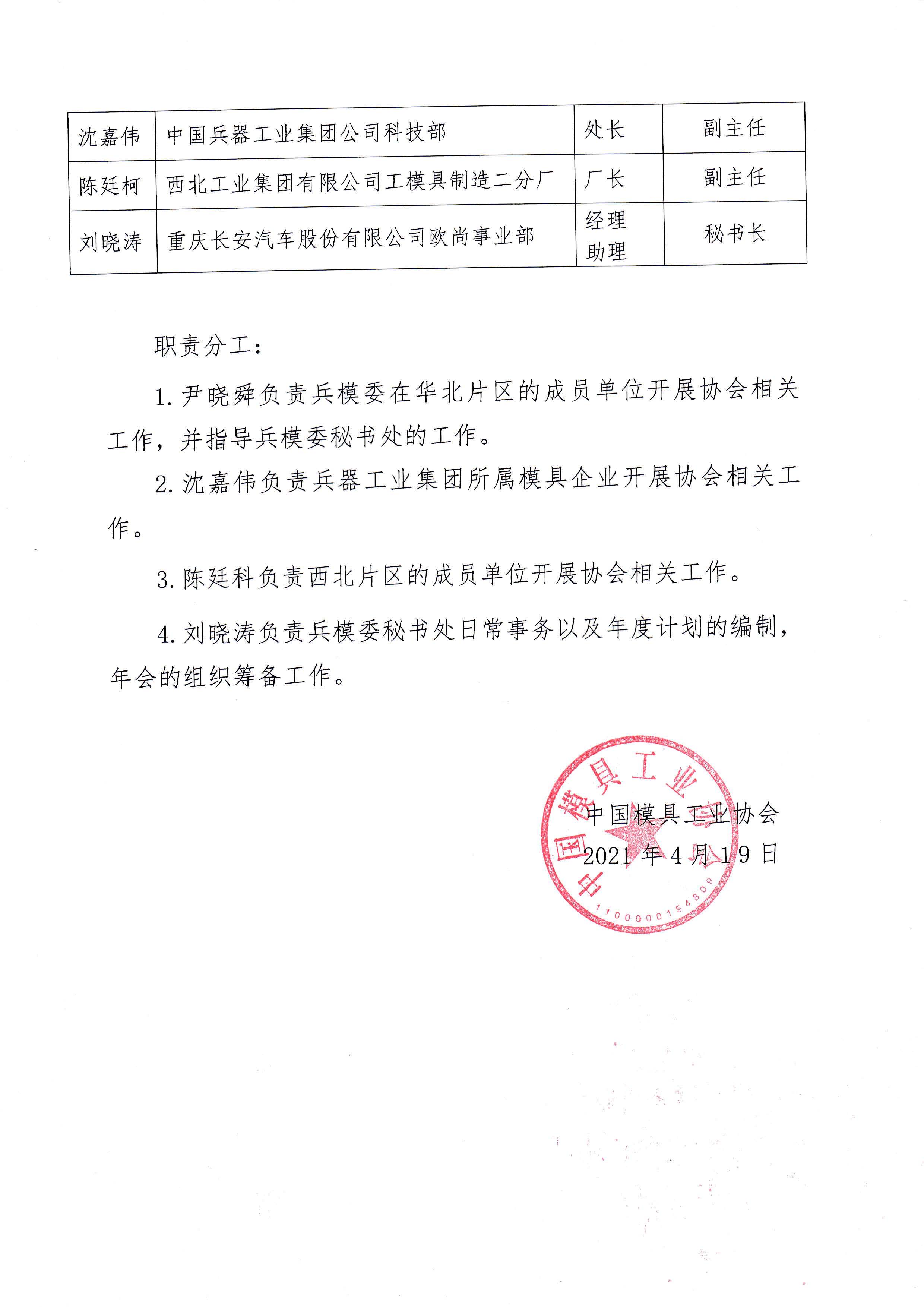 第九屆理事會(huì )兵器模具委員會(huì )建制的批復