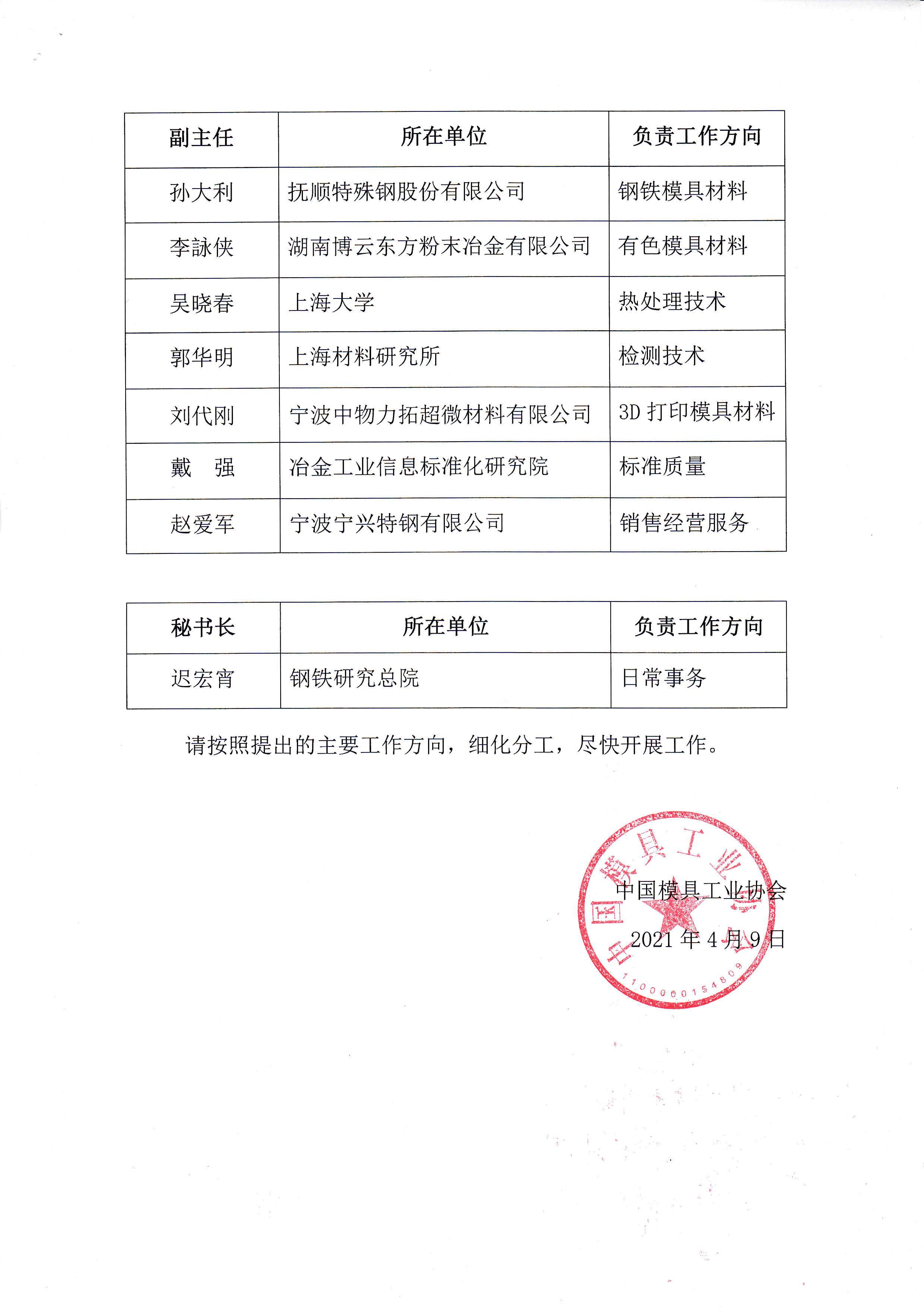 第九屆理事會(huì )模具材料委員會(huì )建制的批復