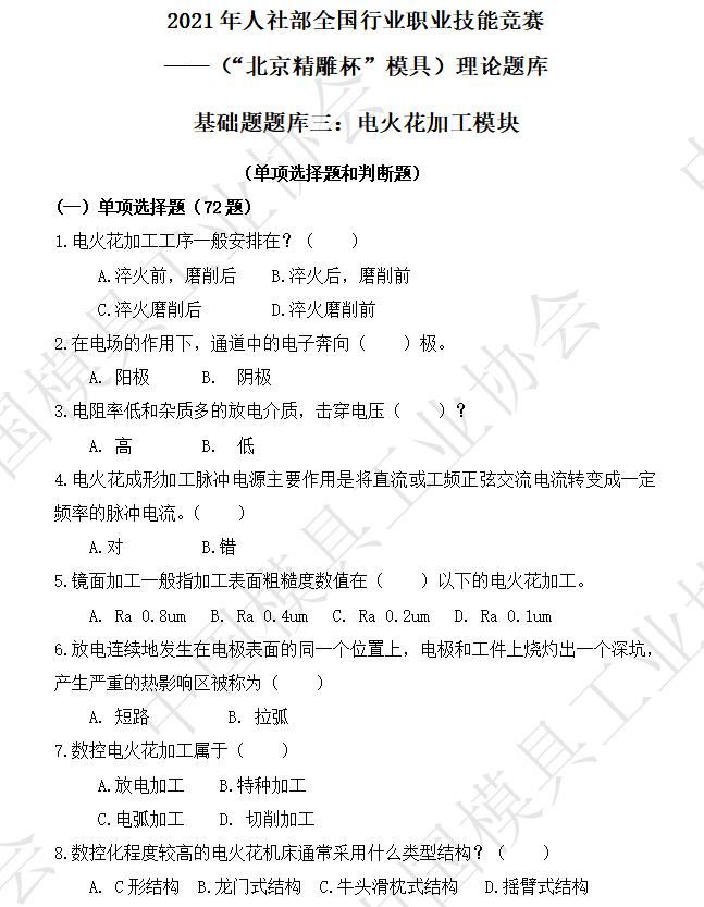 基礎題題庫:電火花加工模塊、電火花線(xiàn)切割加工模塊